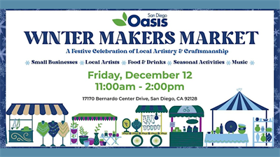 Welcome to the Winter Makers Market! Join us at 17170 Bernardo Center Dr for a day filled with creativity and fun. Discover unique handmade items from local artisans, perfect for holiday gifts or treating yourself. From jewelry to home decor, there's something for everyone. Don't miss out on this opportunity to support small businesses and find one-of-a-kind treasures. See you there!